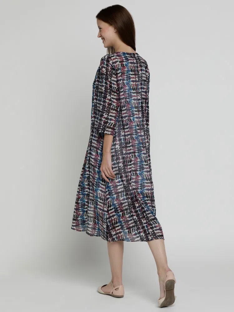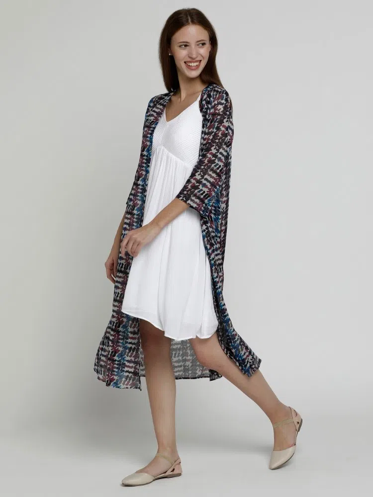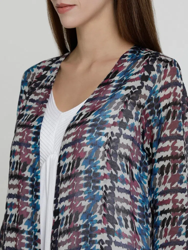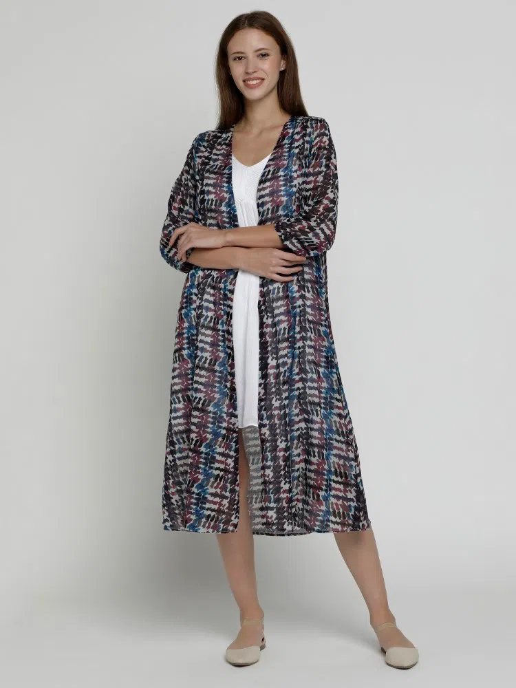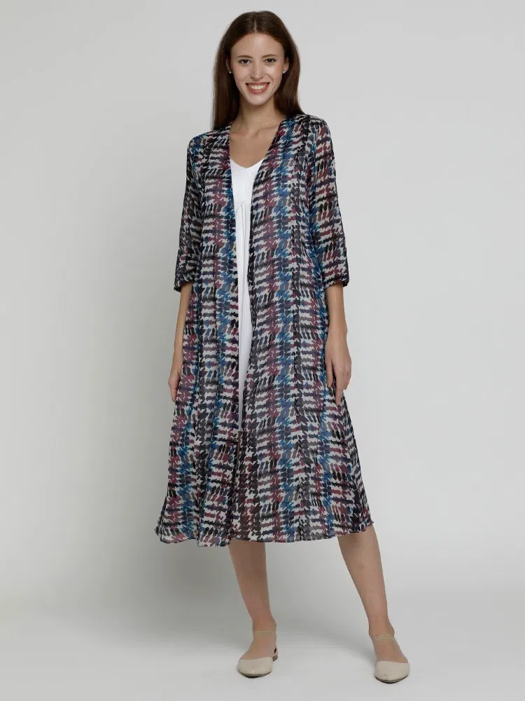 Wrap yourself in the artistic vibrancy of the “Cerulean Dreams Panel Cut Jacket,” a captivating addition to your wardrobe that combines style and comfort. This jacket is made from MUL, a lightweight and breathable fabric that ensures all-day comfort without sacrificing elegance. The mesmerizing print features shades of blue with hints of complementary colors, creating a visual feast reminiscent of abstract art. The panel cut design adds structure and flow to the jacket, allowing it to drape beautifully over any outfit. With its versatile printed blue palette, this jacket can be coordinated with a variety of colors, making it an excellent layering piece for both casual and formal occasions. Whether paired with a simple dress or a sophisticated ensemble, it offers a statement of style that is both bold and effortlessly chic.