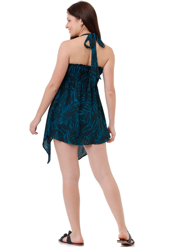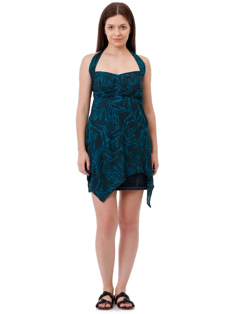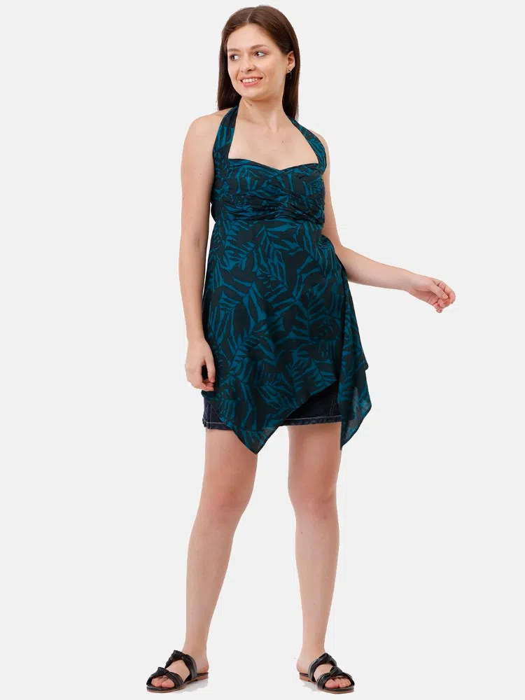 Step into the night with our ‘Emerald Twilight Halter Top’, where fashion-forward design meets the timeless elegance of nature’s hues. This stunning piece showcases a bold black and green floral pattern on high-quality crush cotton, ensuring both durability and style. The top’s halter neck and crisscross yoke offer a flattering neckline, while the asymmetrical cut provides a flowy and graceful silhouette. Perfect for a summer evening out or a casual day affair, this asymmetrical top combines the comfort of cotton with the allure of contemporary design, making it a must-have for those who covet unique style without compromising on comfort.