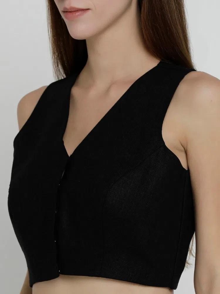 Step into the realm of classic sophistication with a touch of whimsy in the “Noir Fish Motif Elegance Blouse.” This piece is finely crafted from a rich cotton silk blend, giving it a subtle sheen and an exceptionally smooth touch. The blouse is shaded in a timeless black, offering endless pairing possibilities. Its princess cut and square-cut racerback design provide a contemporary silhouette that flatters the figure while maintaining an air of understated elegance. The unique feature of this blouse is the intricate fish embroidery, a delicate detail that adds a playful and artistic touch to the overall design. Whether styled for a casual day out or dressed up for an evening affair, this blouse is a versatile addition to your wardrobe that combines modern design with an enchanting thematic element.