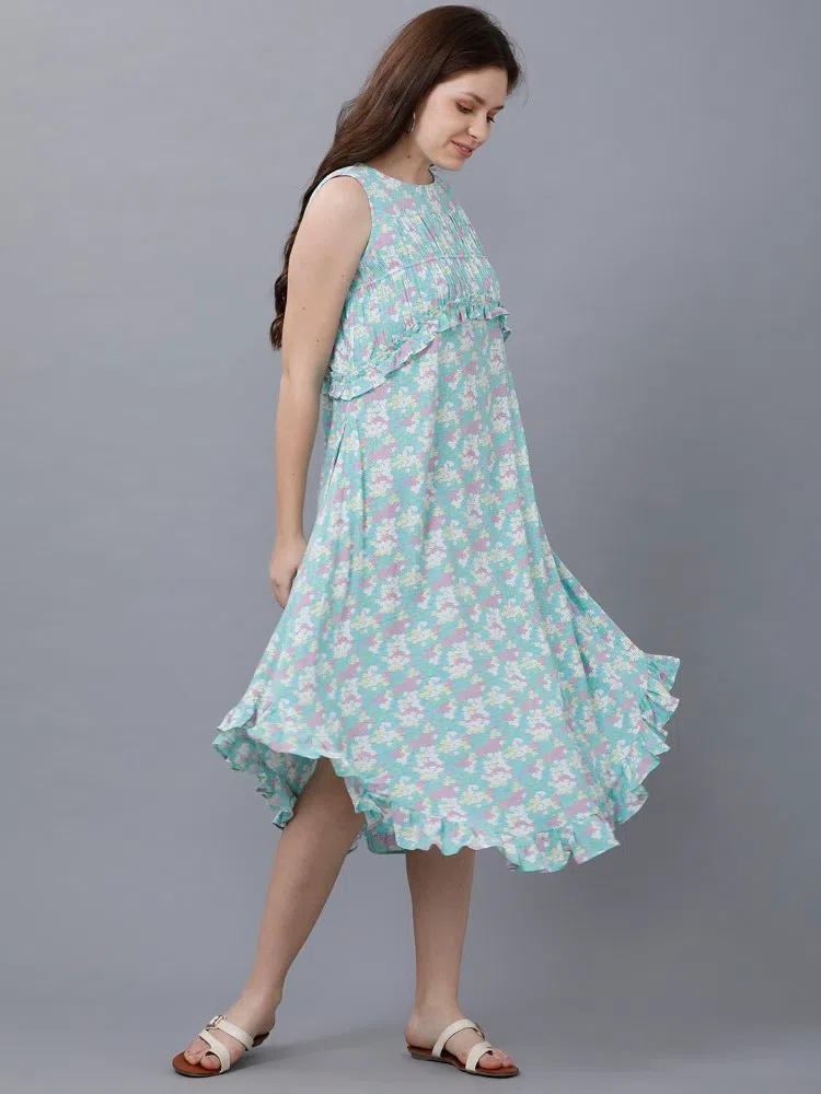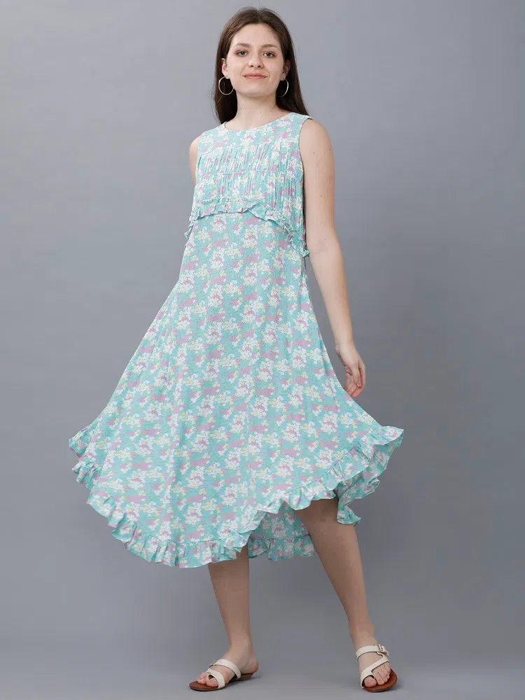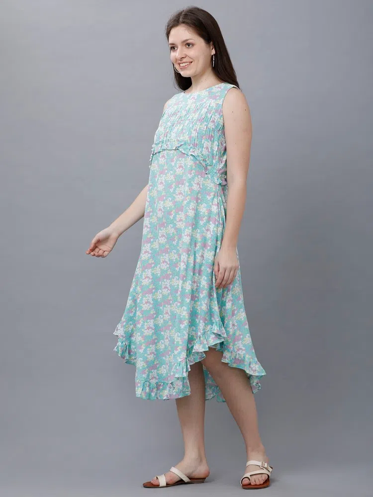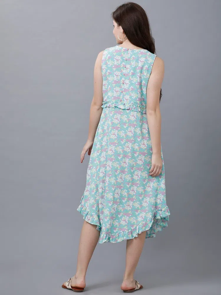 The Spring Fling Floral Dress is designed to celebrate the vibrancy and colors of the spring season. This delightful dress is crafted from soft, lightweight crush cotton, making it perfect for warm weather and outdoor festivities. Its cheerful multi-floral print, featuring a blend of pastel and vivid colors, mirrors the blooming gardens of spring, bringing a fresh and youthful vibe to your wardrobe. The dress features a sophisticated gathered yoke that adds texture and depth to the bodice, complemented by a unique U-shaped ruffle hem that dances around your legs as you move. This feature not only adds a playful flair but also accentuates the dress’s free-flowing silhouette. Whether you’re attending a springtime soiree or enjoying a sunny day in the park, the Spring Fling Floral Dress is your go-to choice for a stylish, comfortable, and memorable outfit.