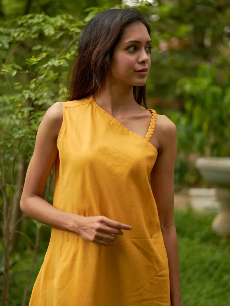 Step into a world of effortless style with our Sunbeam Braided Elegance Dress, a perfect blend of tradition and trend. Crafted from the finest cotton linen, this dress promises not only a breathable fit but also a statement look that stands out. The one-shoulder silhouette, adorned with a delicately braided strap, offers a chic asymmetrical allure that’s both sophisticated and playful.