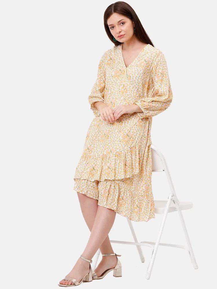The Tangerine Dream Dress is a delightful expression of style and grace, perfectly crafted from micro crush fabric adorned with a lively orange floral pattern. This dress features an exquisite overlap bodice leading to a high-low ruffle hem that dances with every step you take. Ideal for brunches, garden parties, or simply adding a splash of color to your day, it combines sophistication with a touch of whimsy. Its lightweight, airy fabric ensures comfort while providing a flattering fit for all body types, making it a must-have in your wardrobe this season.