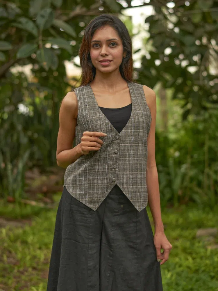 Embrace a fusion of classic and modern with our Urban Chic Houndstooth Waistcoat, featuring a front open design for effortless style.